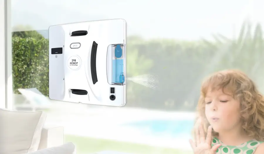 מנקה חלונות רובוטי דגם 298 מבית Hobot מנקה את החלונות מבפנים ומבחוץ, ללא הגבלת עובי חלון, חלונות עם ובלי מסגרת, בעל פונקצייה בלעדית להתזת אולטראסונית של סבון ניקוי, הפעלה באמצעות שלט רחוק או אפליקציה ייעודית, מערכת אל פסק למקרה של הפסקת חשמל, כבל אבטחה, מתאים גם למעקות, קרמיקות מקלחונים.