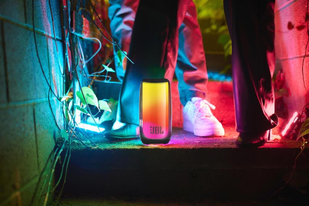רמקול JBL Pulse 5 מסונכרן עם קצב המוזיקה שלכם כאשר נשמע בס עמוק התאורה משתנה בהתאם.