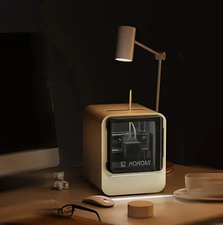 מדפסת תלת מימד דגם EC2 מבית Kokoni. קטנה שקטה ובטוחה, נהדרת כמדפסת ראשונה. עובדת עם תוכונת משולבות AI ליצירת מודלים בקלות, כוללת מצלמה מובנית למעקב אחר מצב ההדפסה ויצירת סרטוני Time-Lapse ושיתופם עם חברים, כוללת מכסה הגנה.