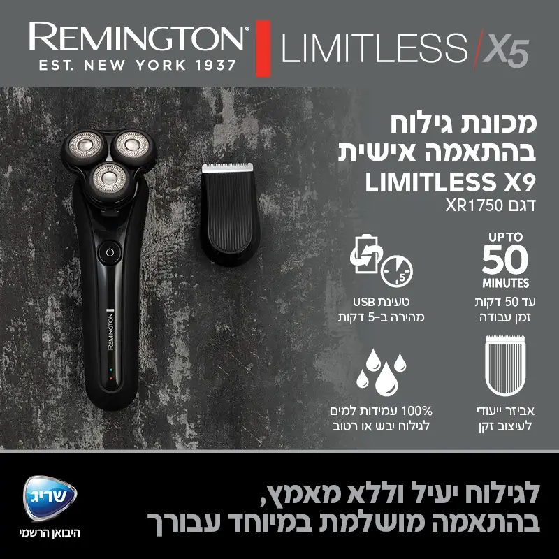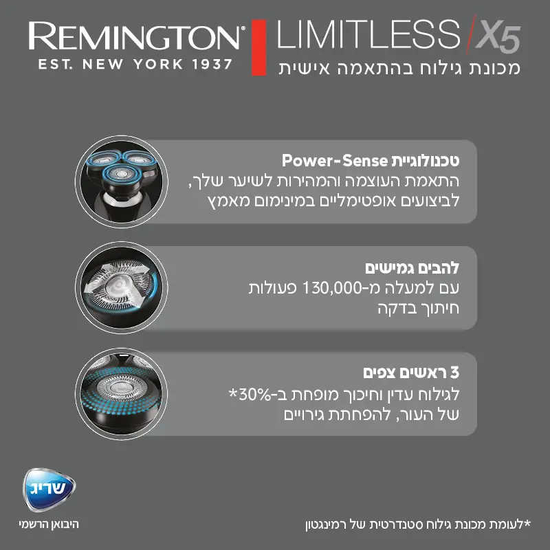 חווה את הגילוח הנקי האולטימטיבי עם מכונת הגילוח הרוטרי Limitless X5. עם PivotBall 360° ולהבי גמישות בודדים הוא נע לכל כיוון כדי ללכוד בנוחות כל שערה על ידי התאמה לצורת הפנים הייחודית שלך.