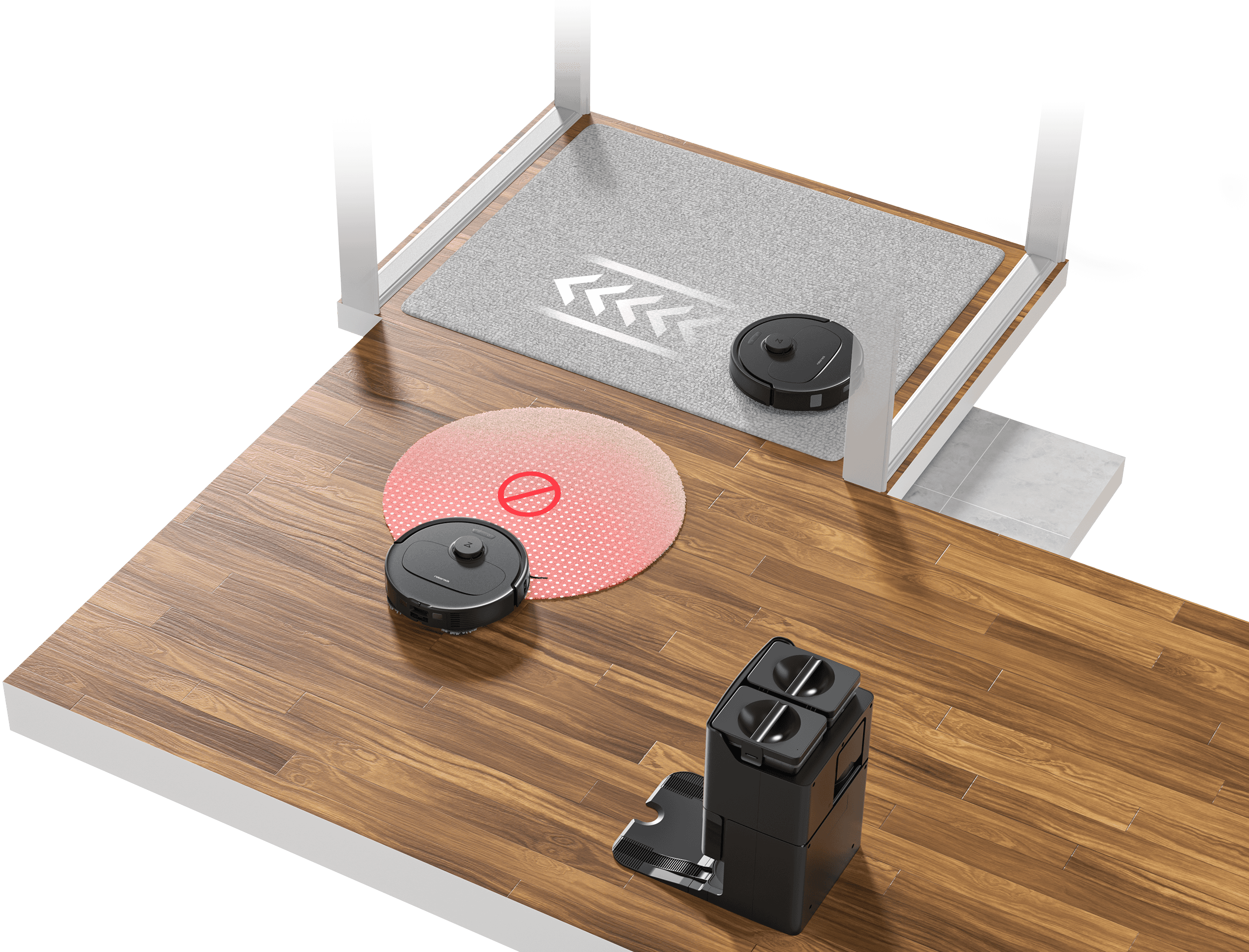 כדי להימנע מלהיתקע במקומות כמו מתחת לכיסאות ושולחנות, ה-Roborock Qrevo S יכול לזהות ולהציע אותם כ'אזורים אסורים'.