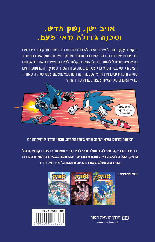 "כתיבה מבריקה. עלילה מושלמת לילדים, כפי שאמור להיות בקומיקס על סוניק, אבל מלהיבה דייה שגם מבוגרים ייהנו ממנה. בניית הדמויות נהדרת והמידע משולב בצורה הגיונית ונכונה." מט דויל מדיה