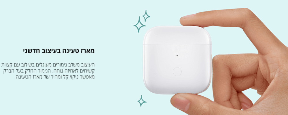 מארז טעינה, זוג אוזניות, כבל טעינה USB Type-C, מדריך למשתמש וכתב אחריות